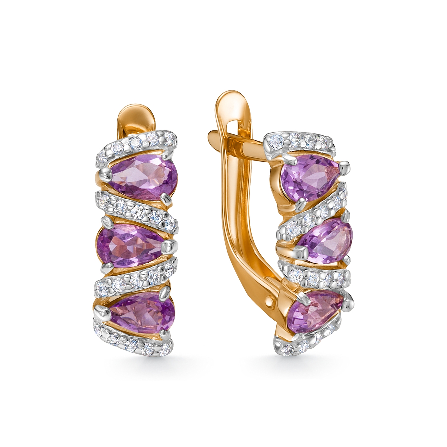 Аметист (6 шт, огранка Груша, цвет Бесцветный)Фианит (40 шт, цвет Бесцветный)