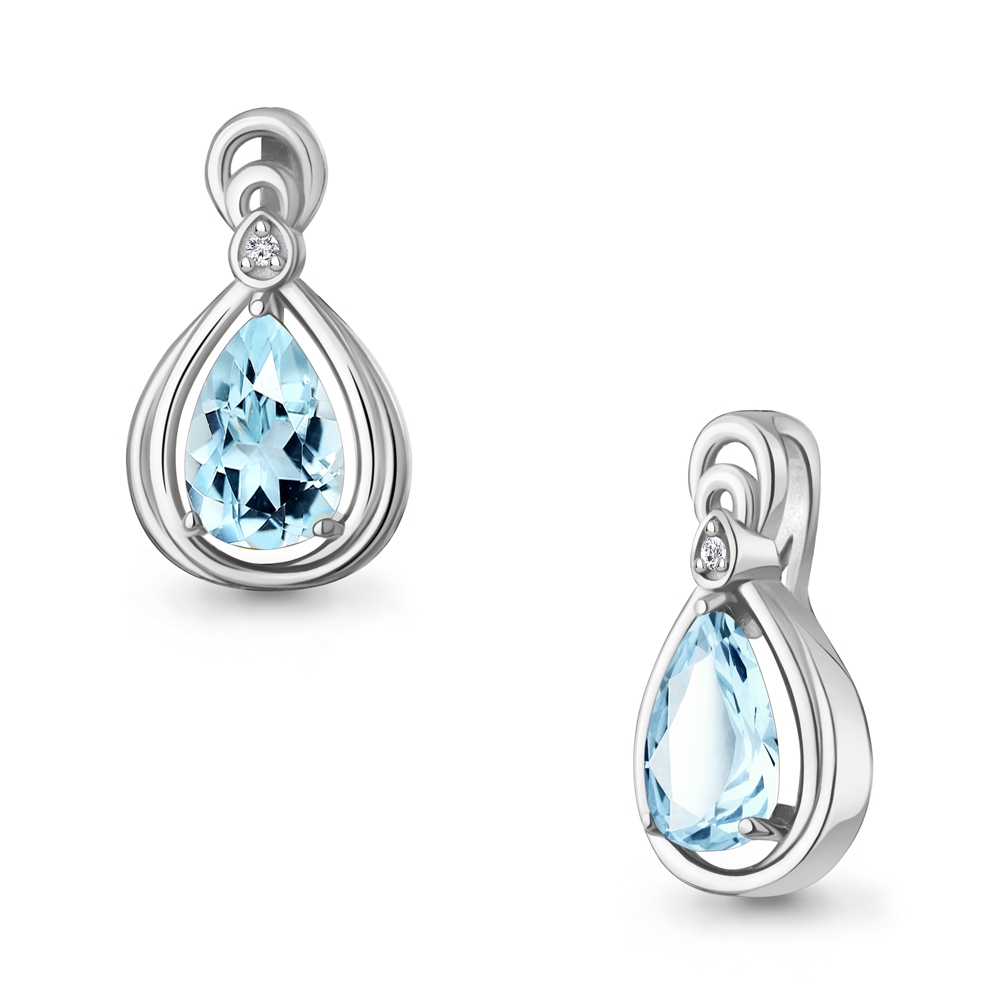Фианит (1 шт, цвет Бесцветный)Топаз (1 шт, 1,365 карат, огранка Груша, цвет Голубой)