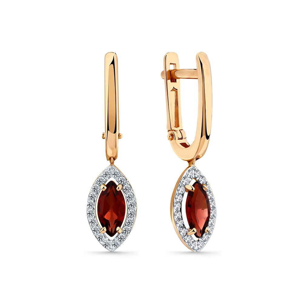 Гранат (2 шт, 1,345 карат, огранка Маркиз, цвет Бесцветный)Фианит (40 шт, огранка Круг, цвет Бесцветный)