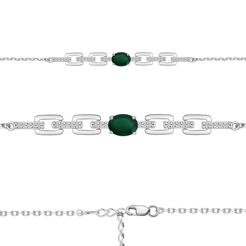 Фианит (26 шт, цвет Бесцветный)Агат (1 шт, 1,118 карат, огранка Овал, цвет Зелёный)